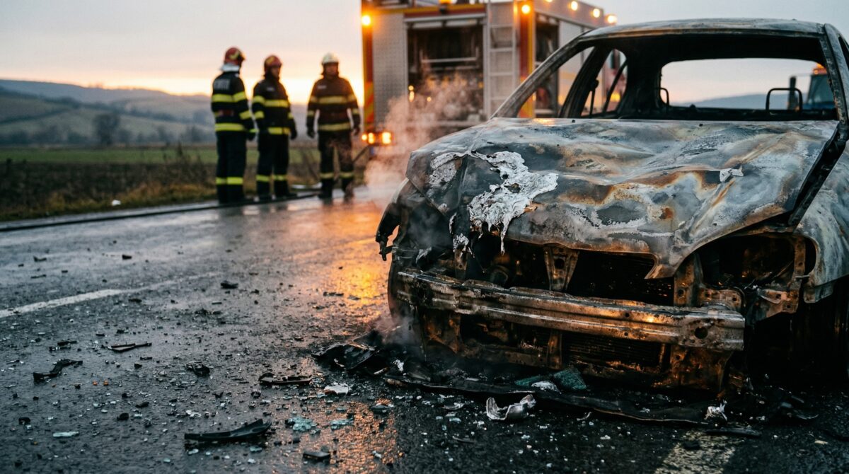 Accident autoturism foc Suceava – butelie GPL explozie