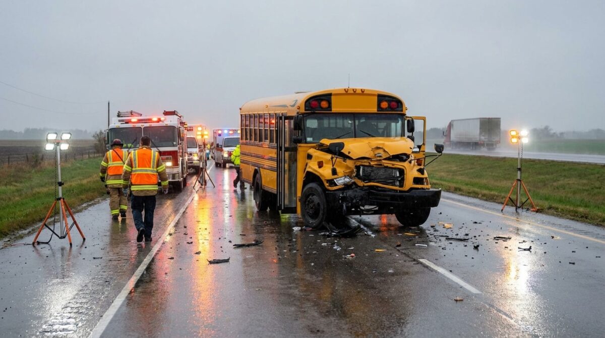 Un microbuz școlar cu 14 elevi s-a ciocnit cu un autotren pe DN7, în zona localității Tărtășești din județul Dâmbovița, trei copii suferind leziuni la cap, toți conștienți și evaluați medical la fața locului.