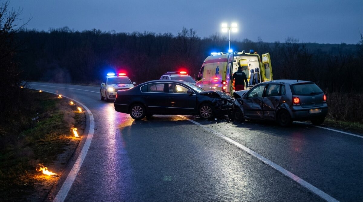 În urma coliziunii, ambele autoturisme au fost proiectate în afara părții carosabile, iar unul dintre ele a luat foc după ce s-a izbit de un copac.