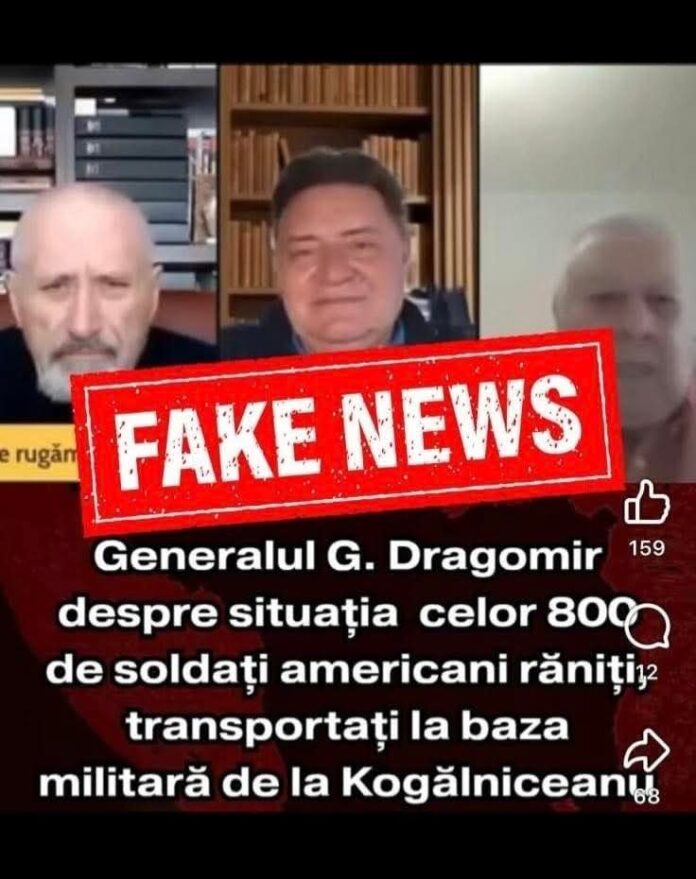 Dezinformarea, circulată online în ultimele 48 de ore, susținea că 800 de militari americani răniți ar fi fost distribuiți în spitale din România și Europa.