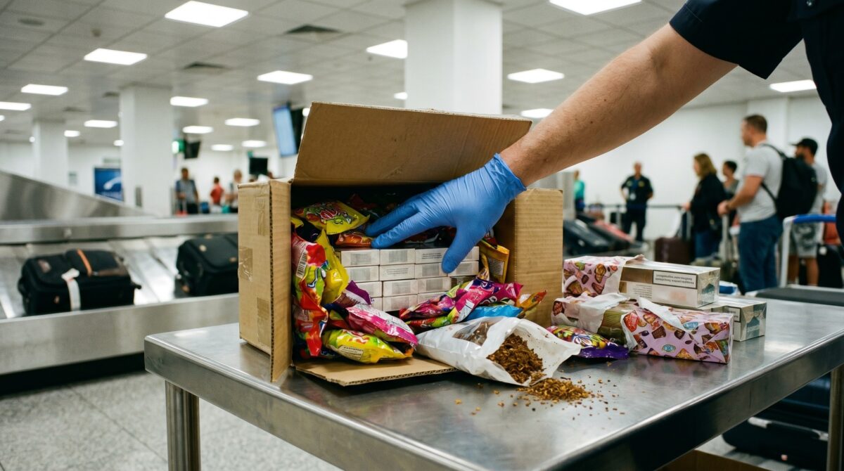 Poliția de Frontieră de la Aeroportul Henri Coandă a confiscat 678 de pachete de țigări și 1,9 kg de tutun vrac, pe care un pasager le introducea ilegal ascunse în cutii de dulciuri și de electronice.